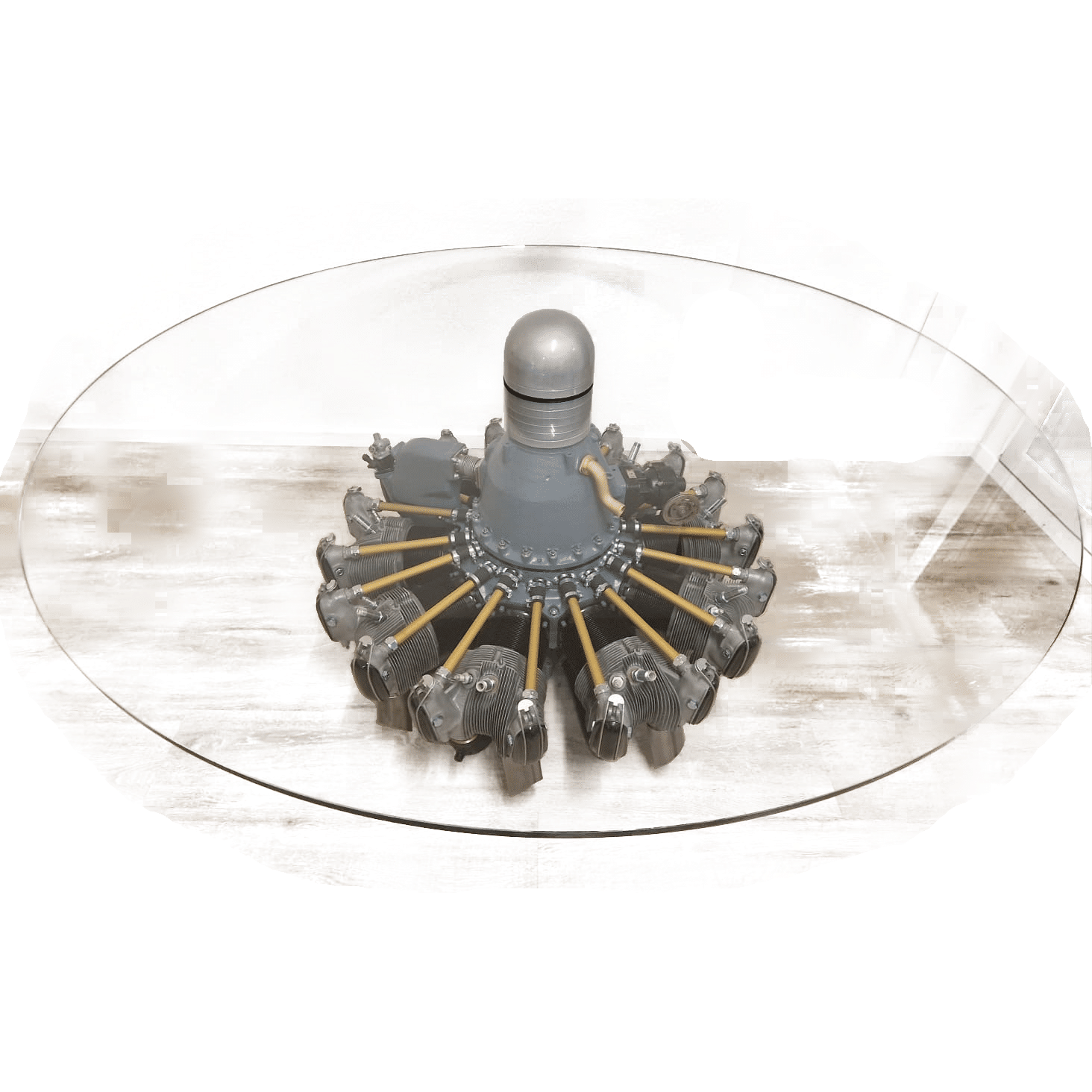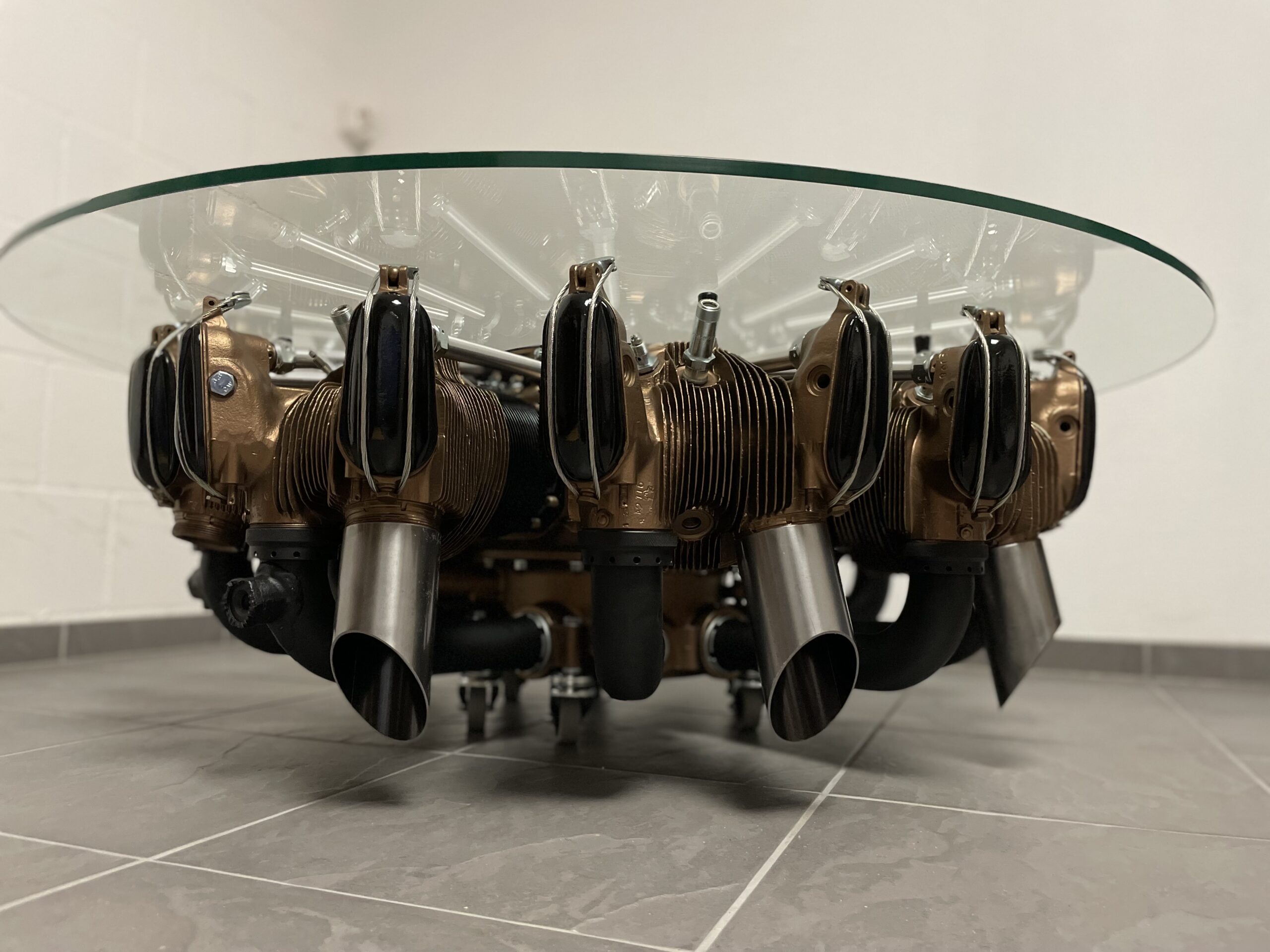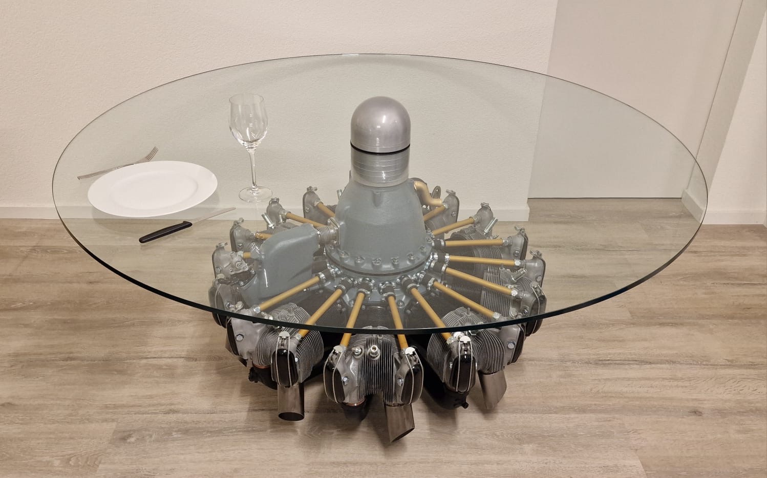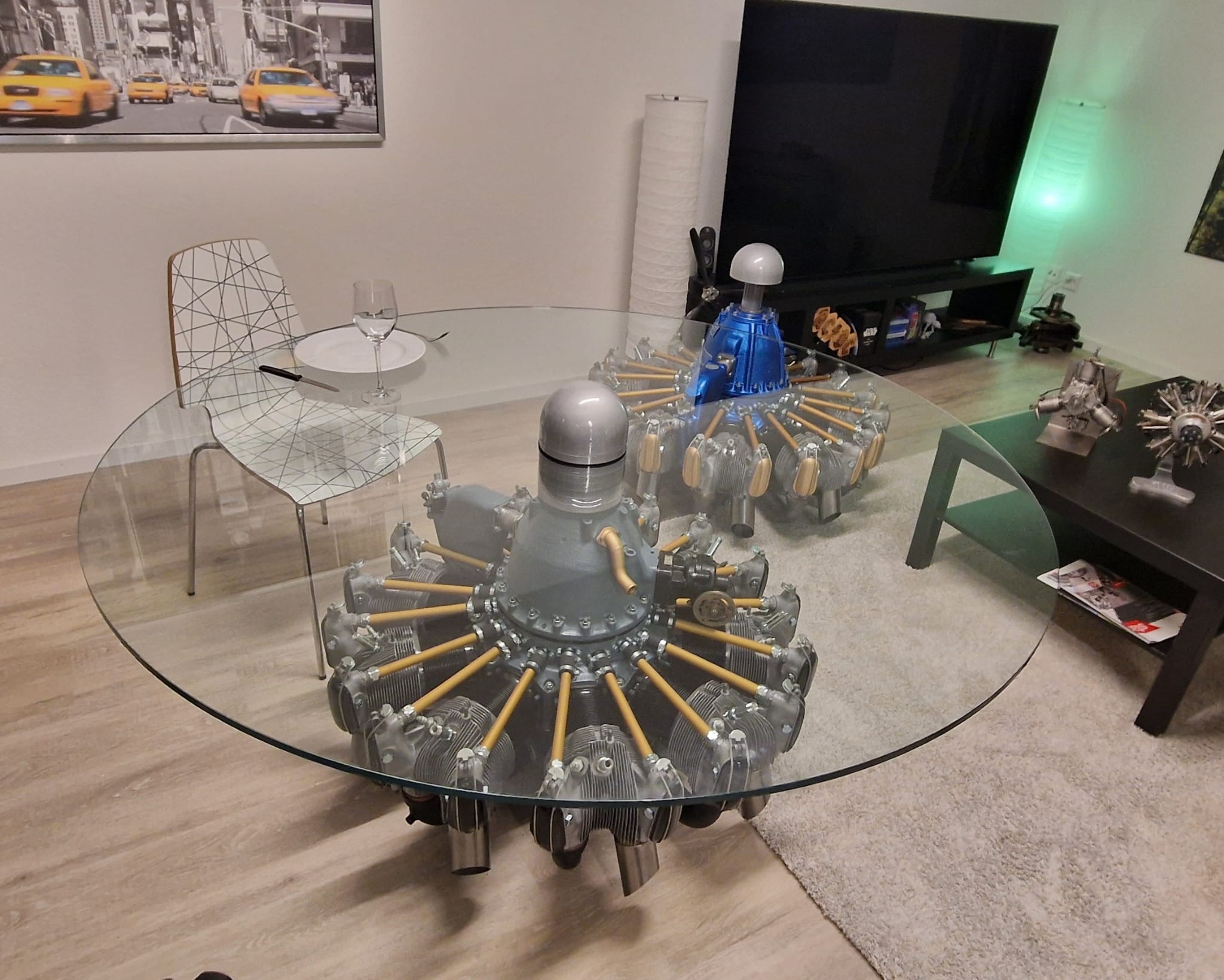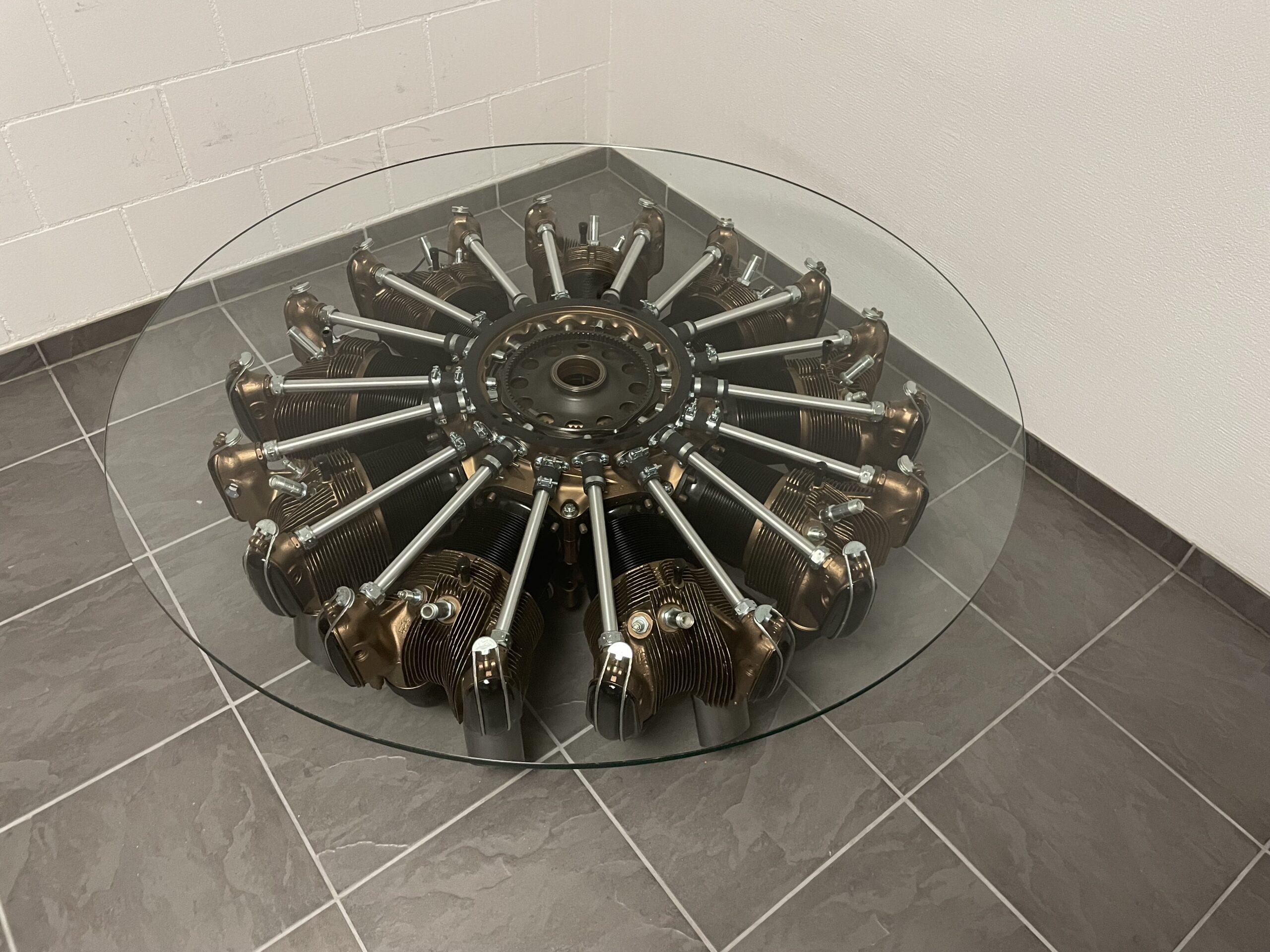 M462RF Sternmotoren, welche einst in der Luftfahrt Verwendung fanden, haben wir nach intensiver Arbeit aufgerüstet und zu beeindruckenden Tischen umgestaltet.