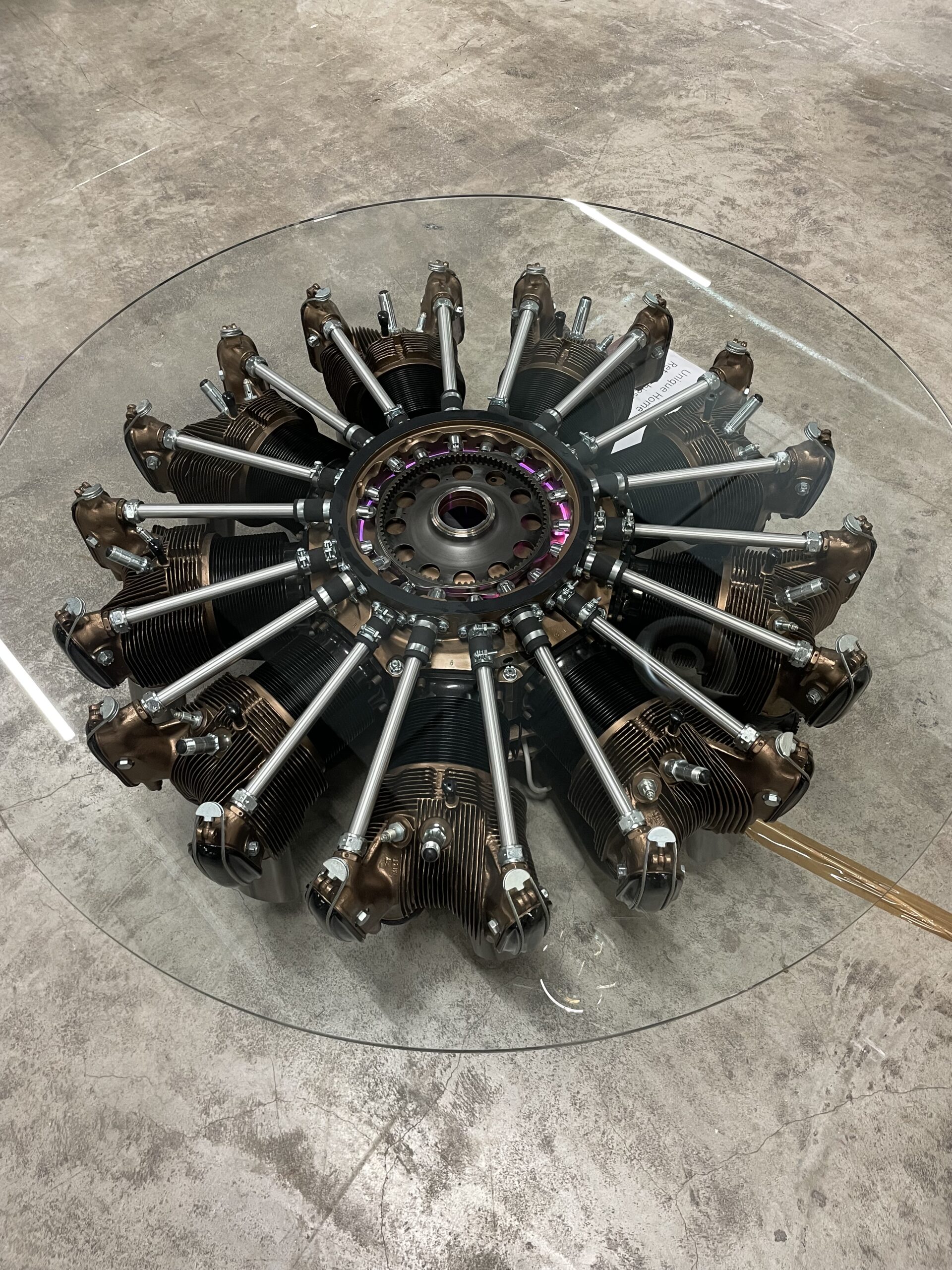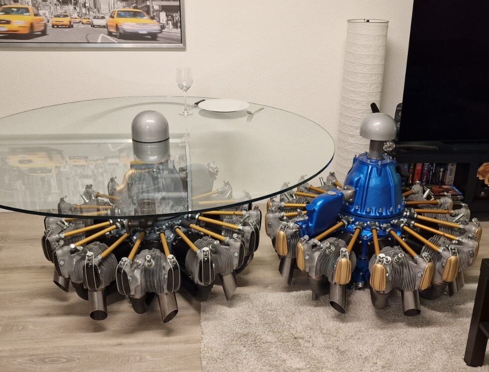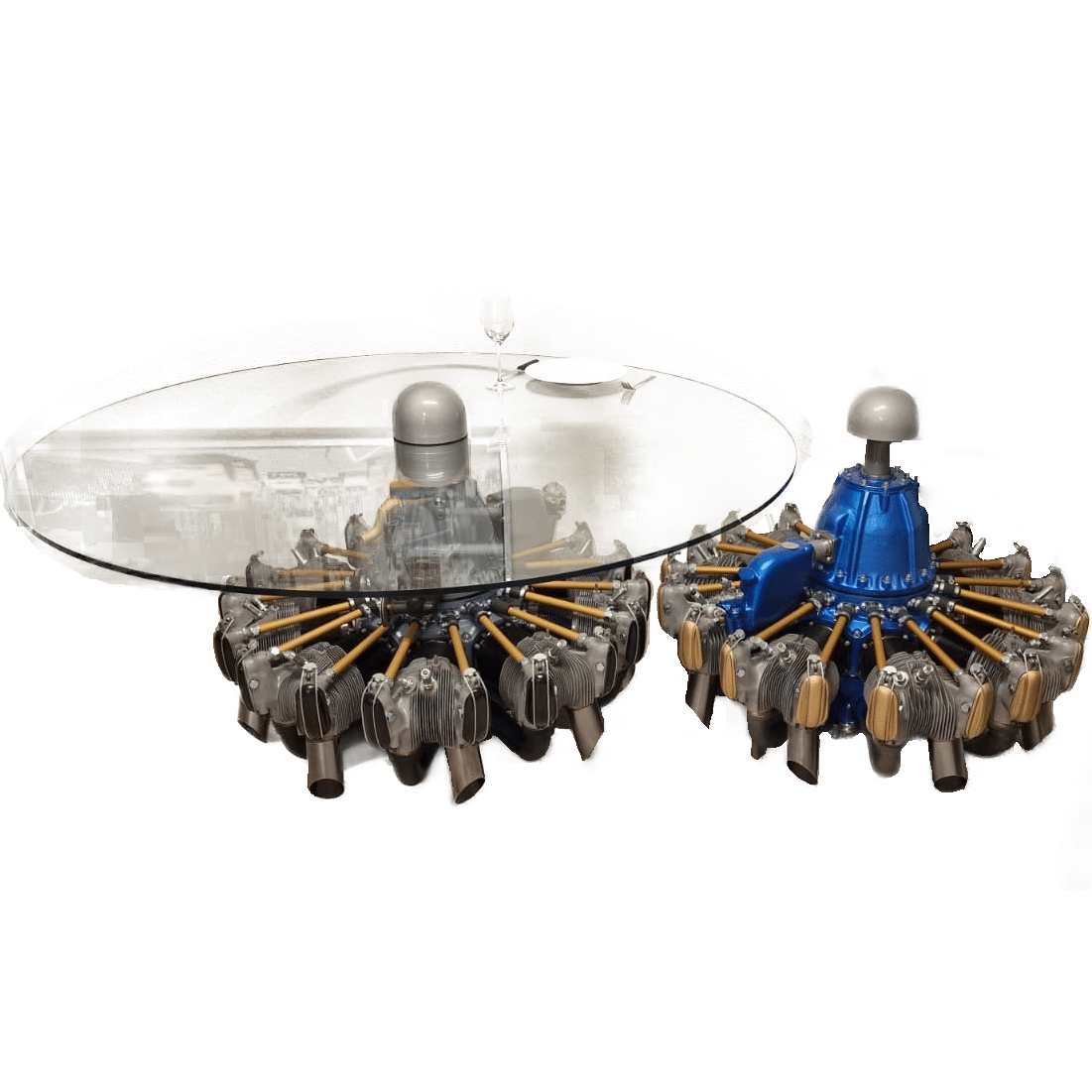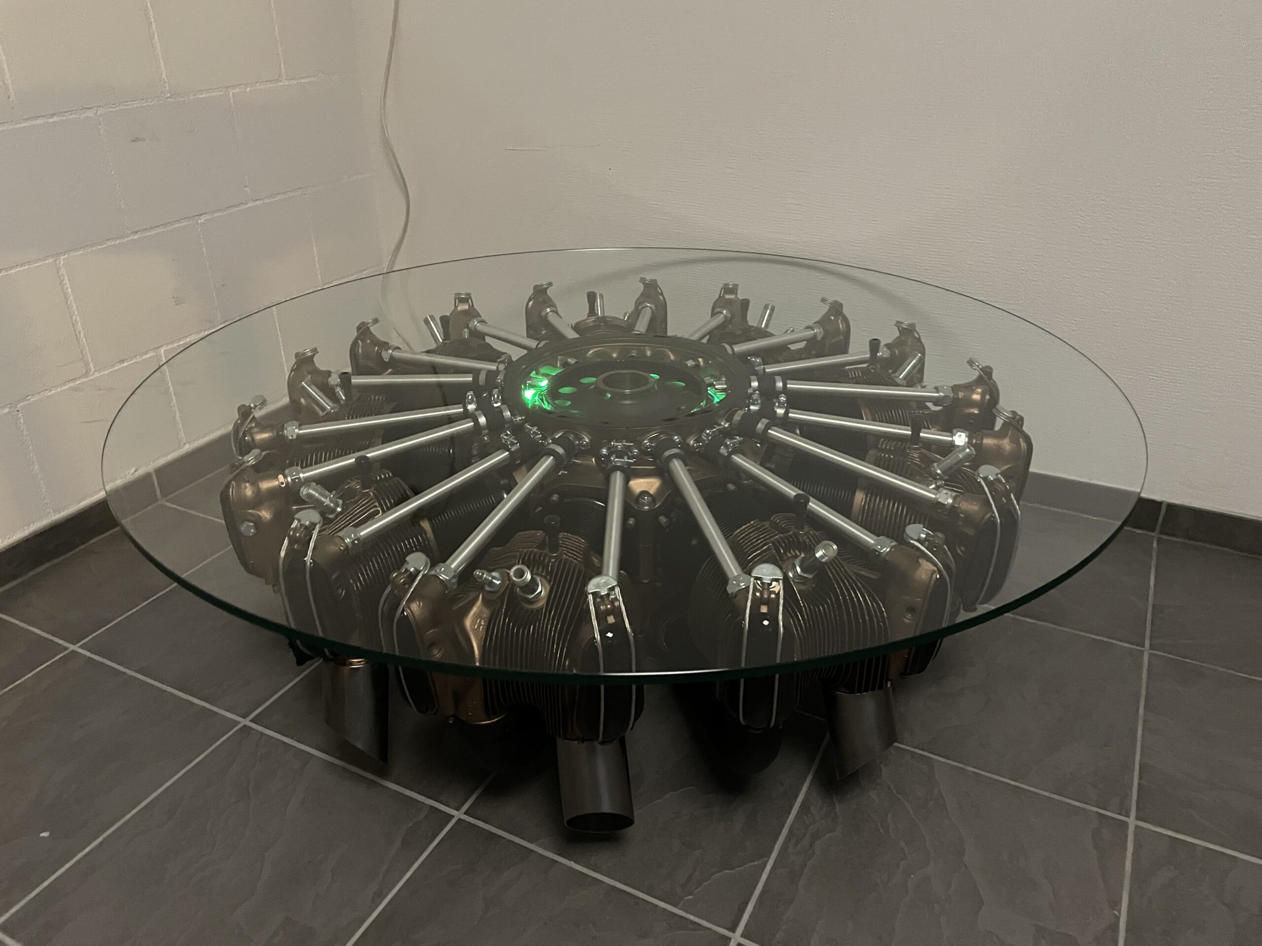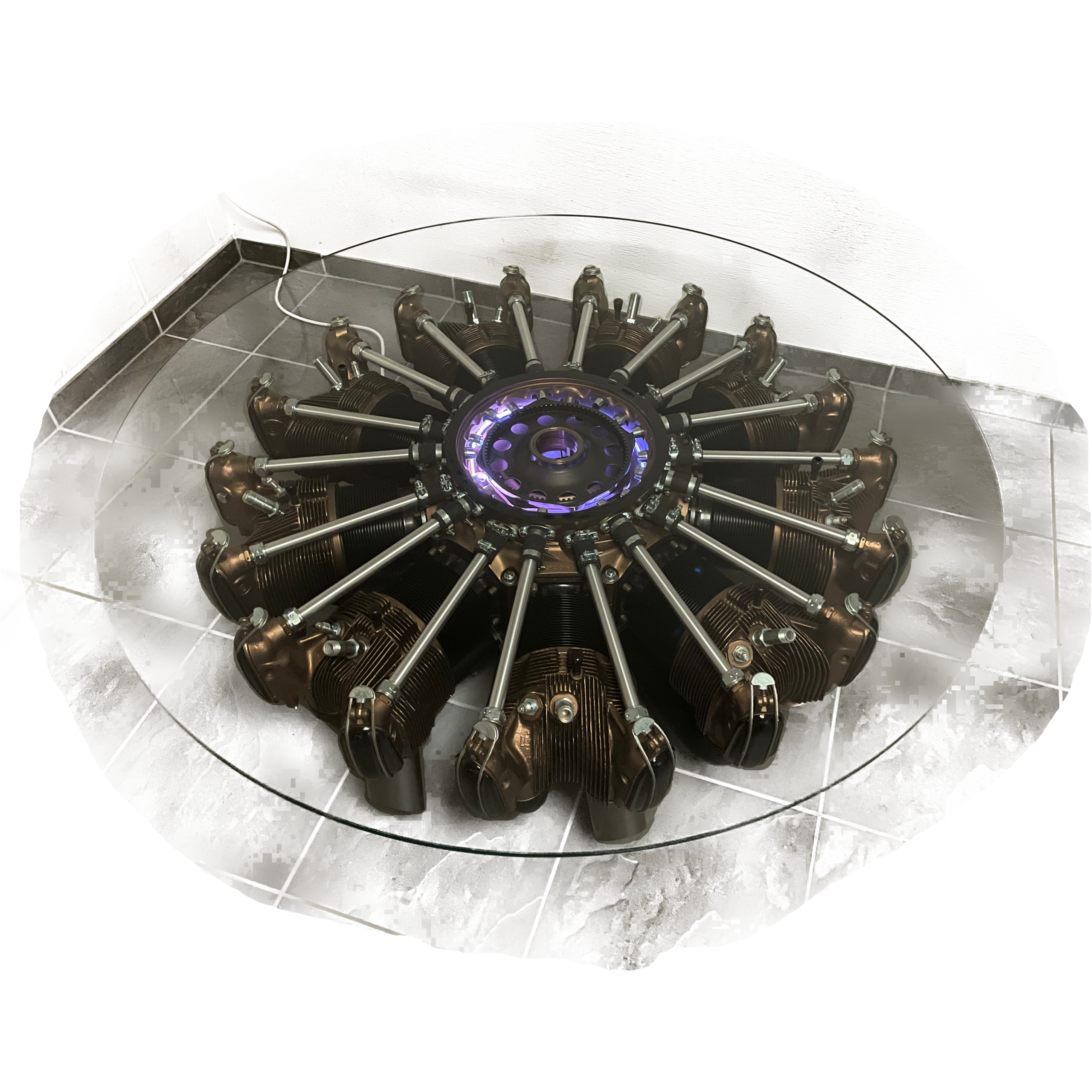 M462RF Sternmotoren, welche einst in der Luftfahrt Verwendung fanden, haben wir nach intensiver Arbeit aufgerüstet und zu beeindruckenden Tischen umgestaltet.