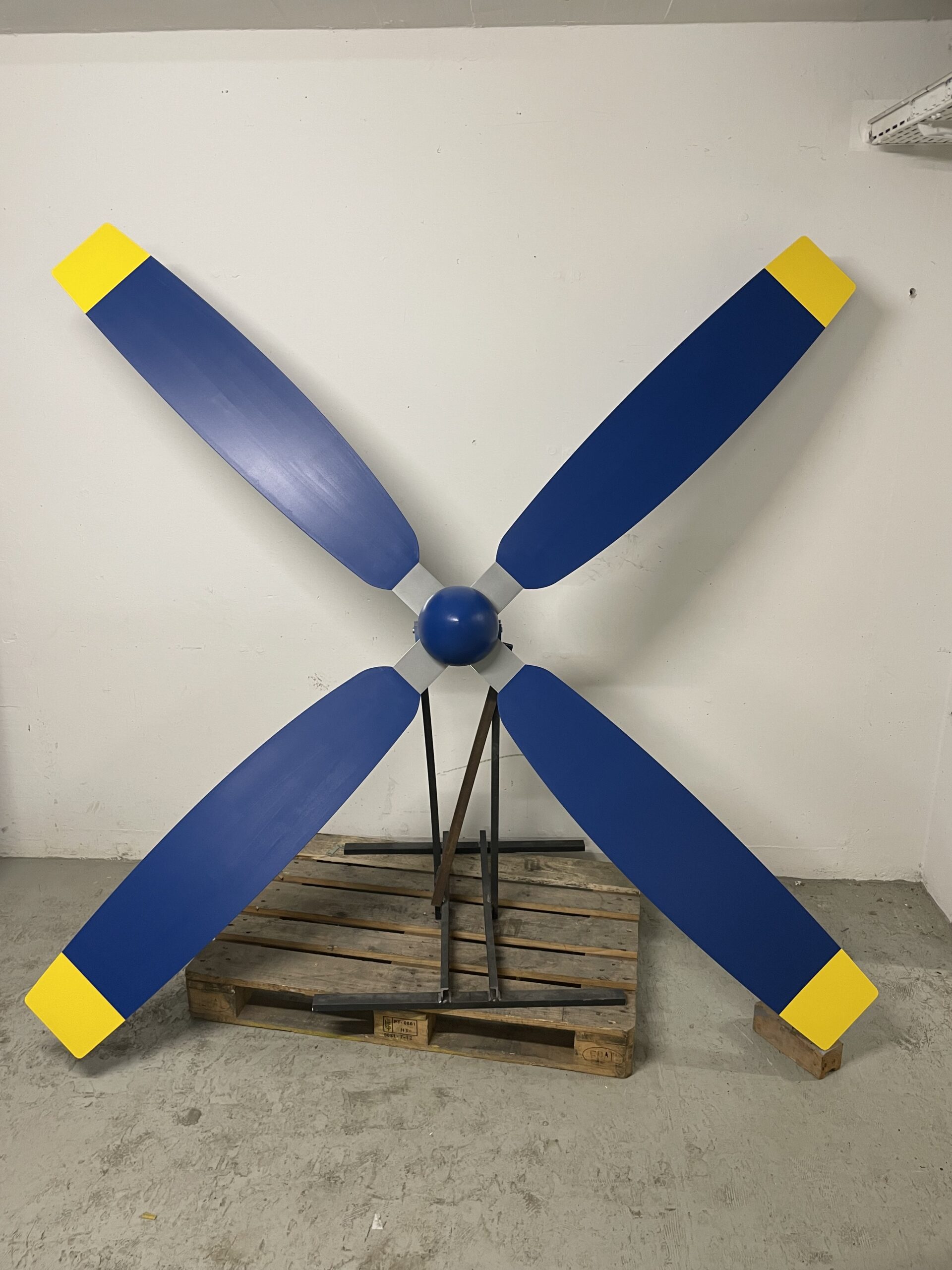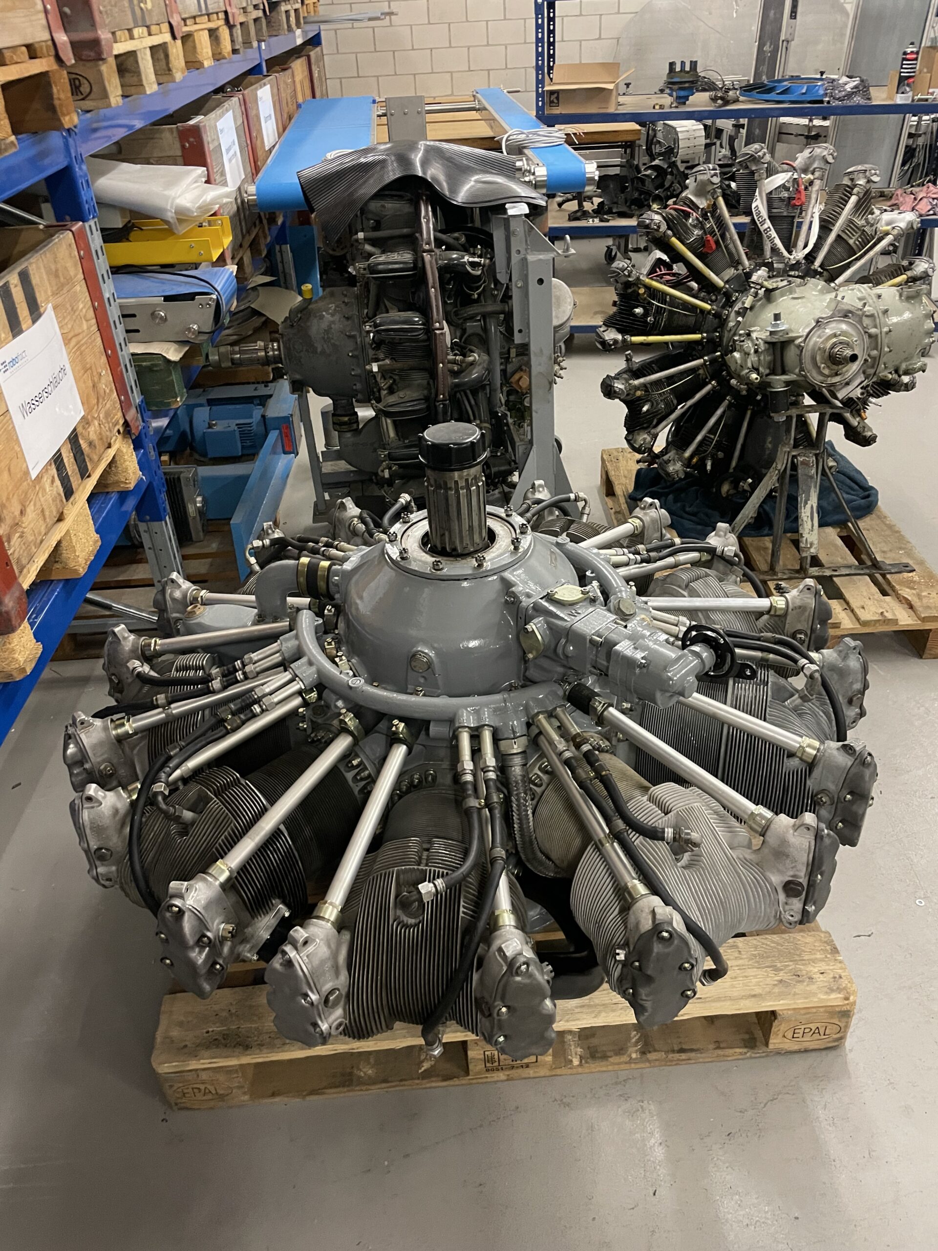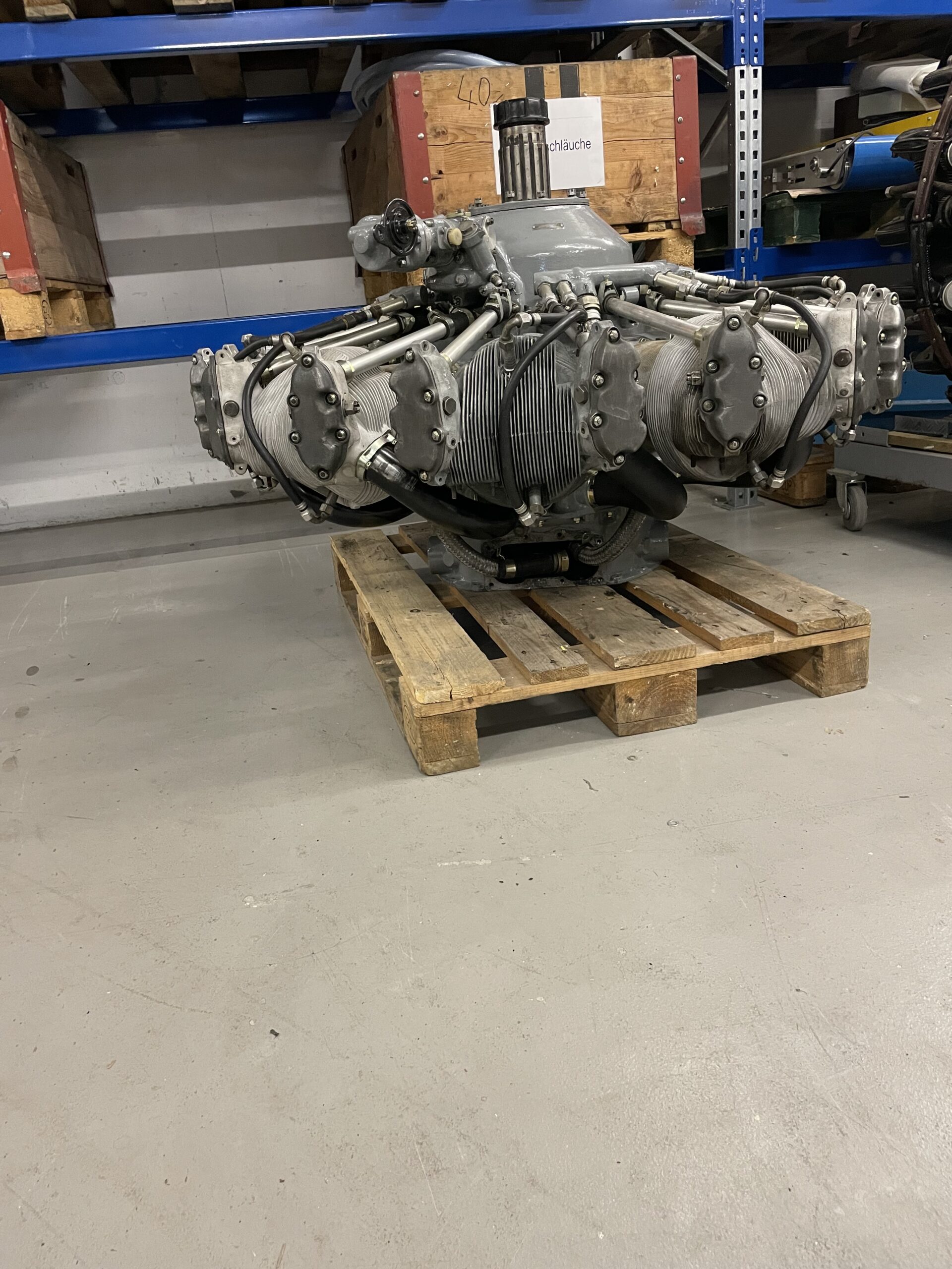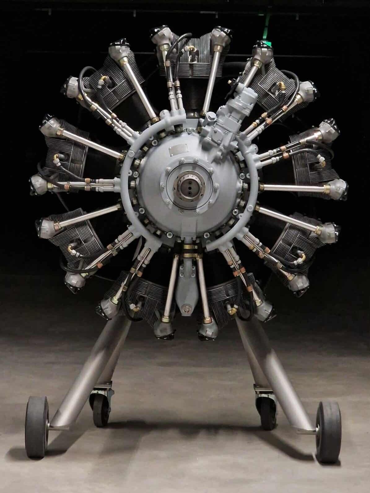 Dafür haben wir selbst ein speziell angefertigtes Gestell entworfen und gefertigt, das an ein Flugzeugfahrwerk erinnert. Der Motor ist einseitig aufgehängt, sodass die Vorderseite uneingeschränkt sichtbar ist und in voller Pracht bewundert werden kann. Ein aussergewöhnliches Projekt, das Technik und Ästhetik auf einzigartige Weise vereint.