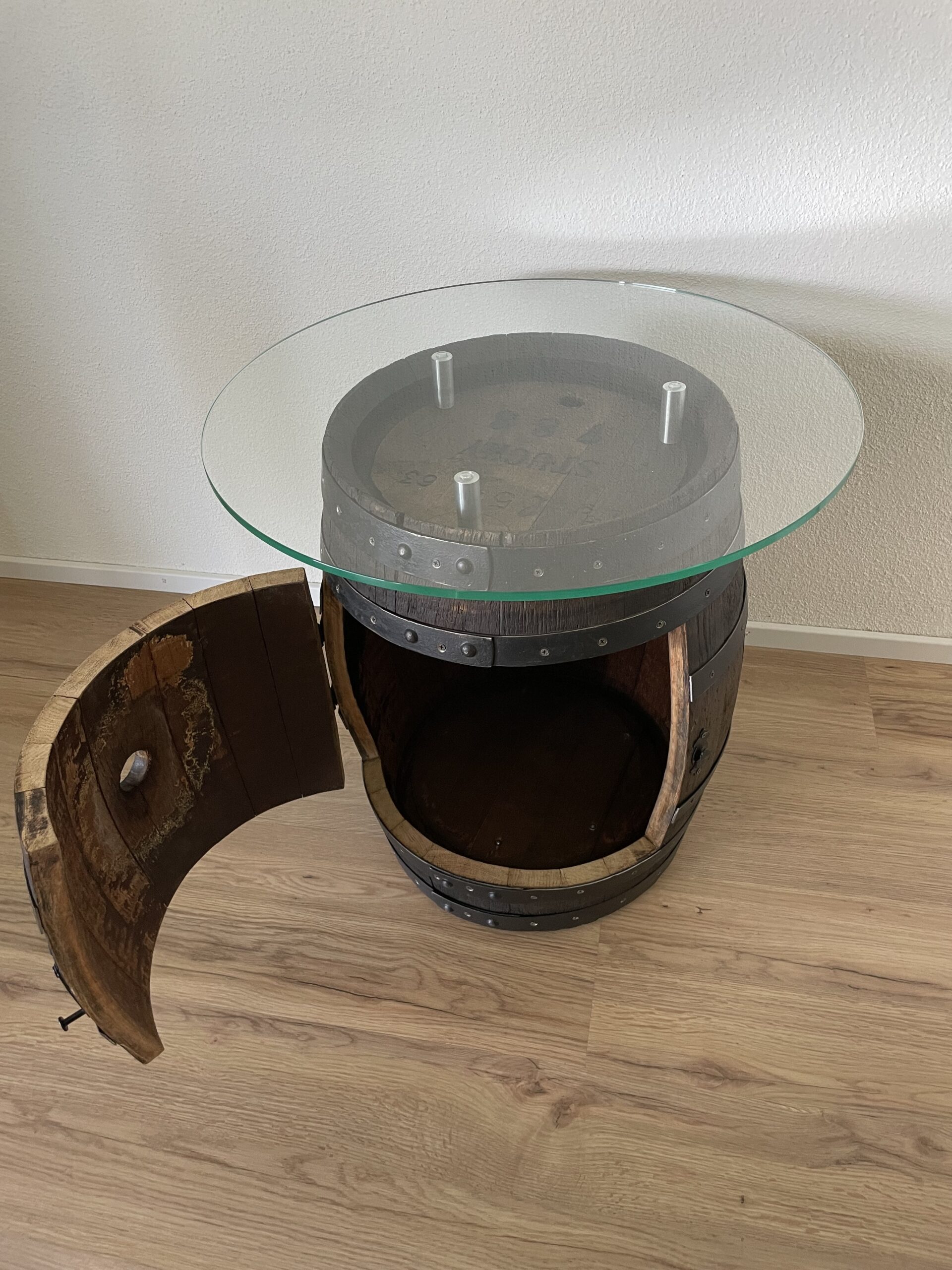 Weinfasstisch und Gestell Benutzte 65 Liter Eichenfässer umgestaltet zu einem Tisch und einem Gestell.Die Färbung innen stammt vom Rotwein, welcher darin gelagert wurde.Der Tisch verfügt über eine stabile, 8mm dicke Glasplatte aus Einscheibensicherheitsglas.Das Fass bietet einen Stauraum für diverse Utensilien.Dimension Tisch:H. 58 x D. 60 cmDas Gestell ist mit einer Glühbirne ausgestattet, welche eine gemütliche Atmosphäre ausstrahlt.Dimension Gestell:H. 100 x D. 50 cm Preis auf Anfrage Kontakt Name * Vorname * E-Mail * Betreff / Produktname Nachricht Datenschutz * Datenschutzbestimmungen wurden zur Kenntnis genommen. Δ UNIQUE HOME CH-9200 Gossau Datenschutz