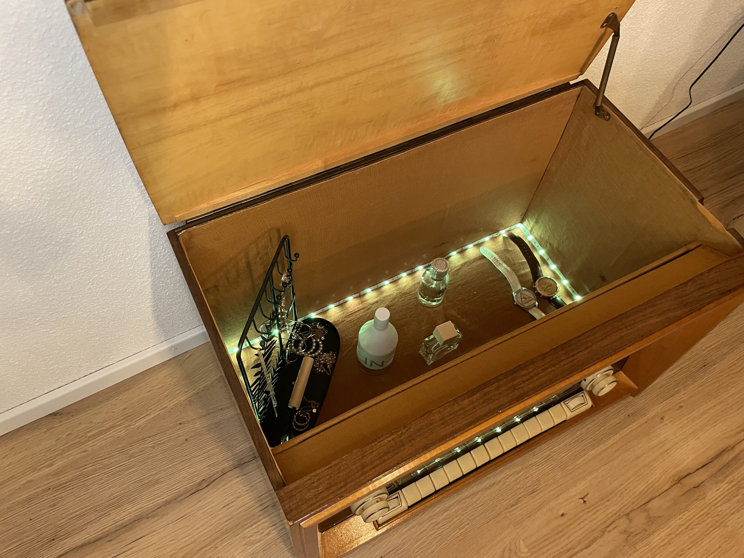 Alter ehemals benutzter Radio umgestaltet zu einer Aufbewahrungsbox.