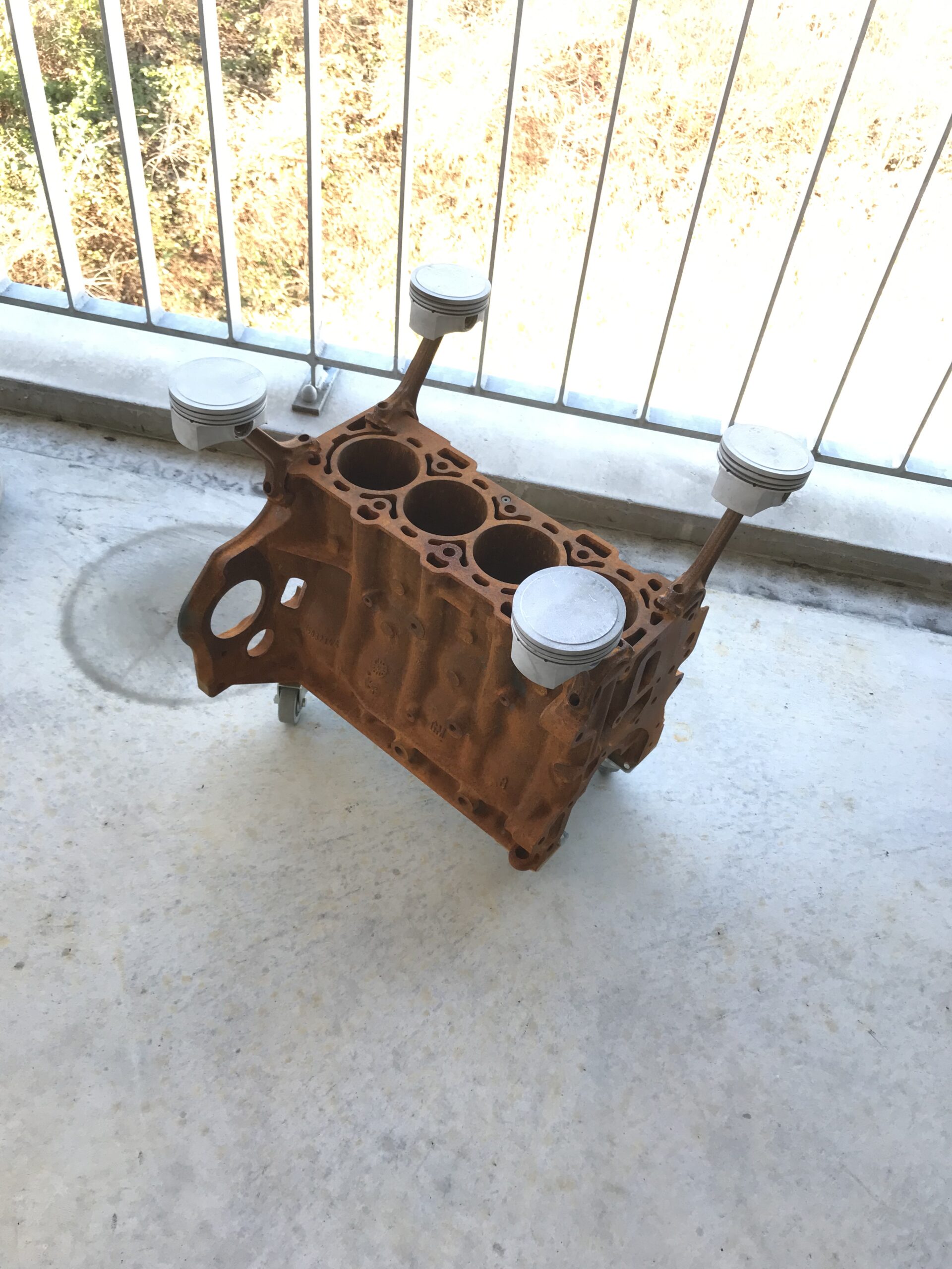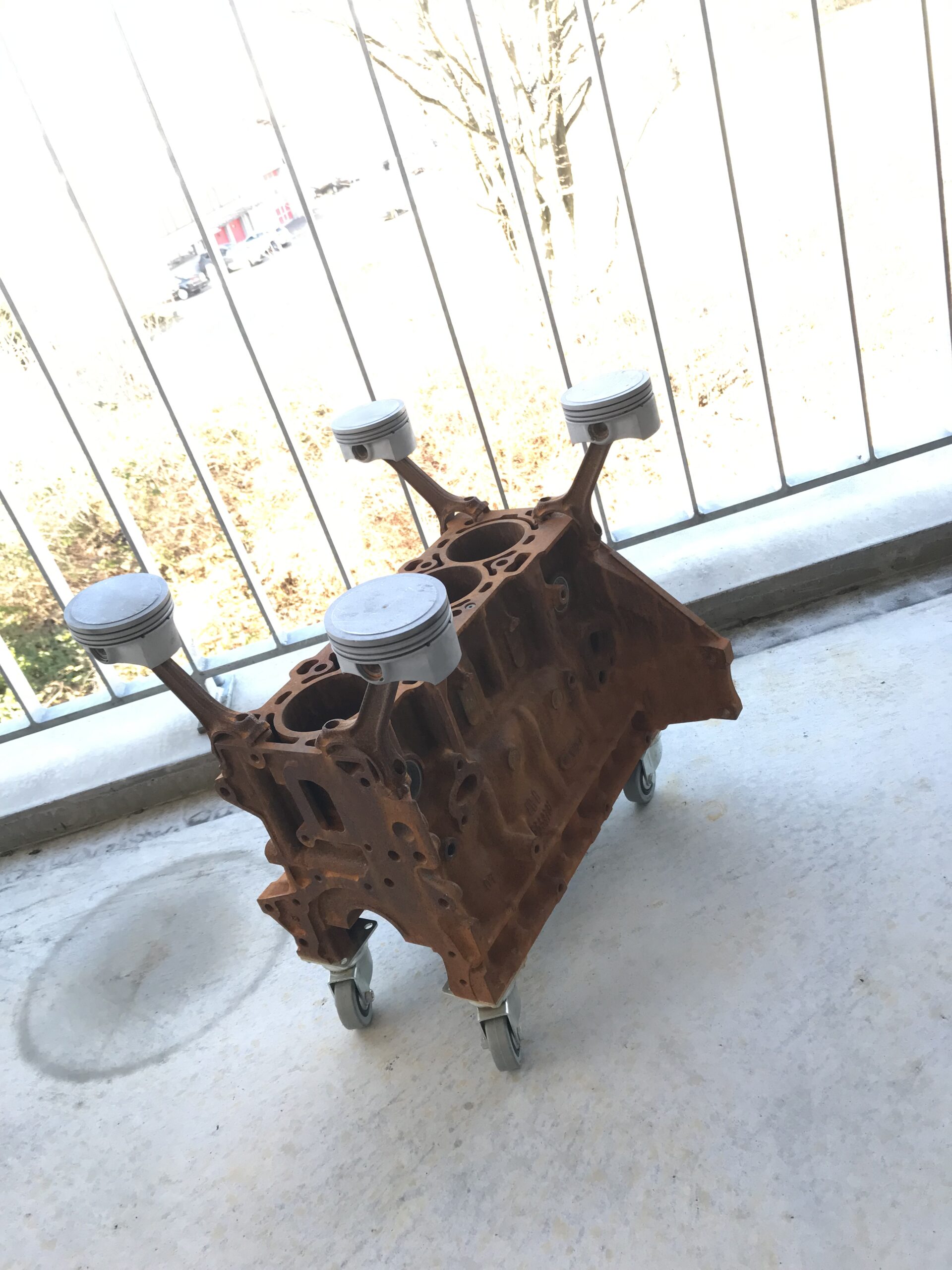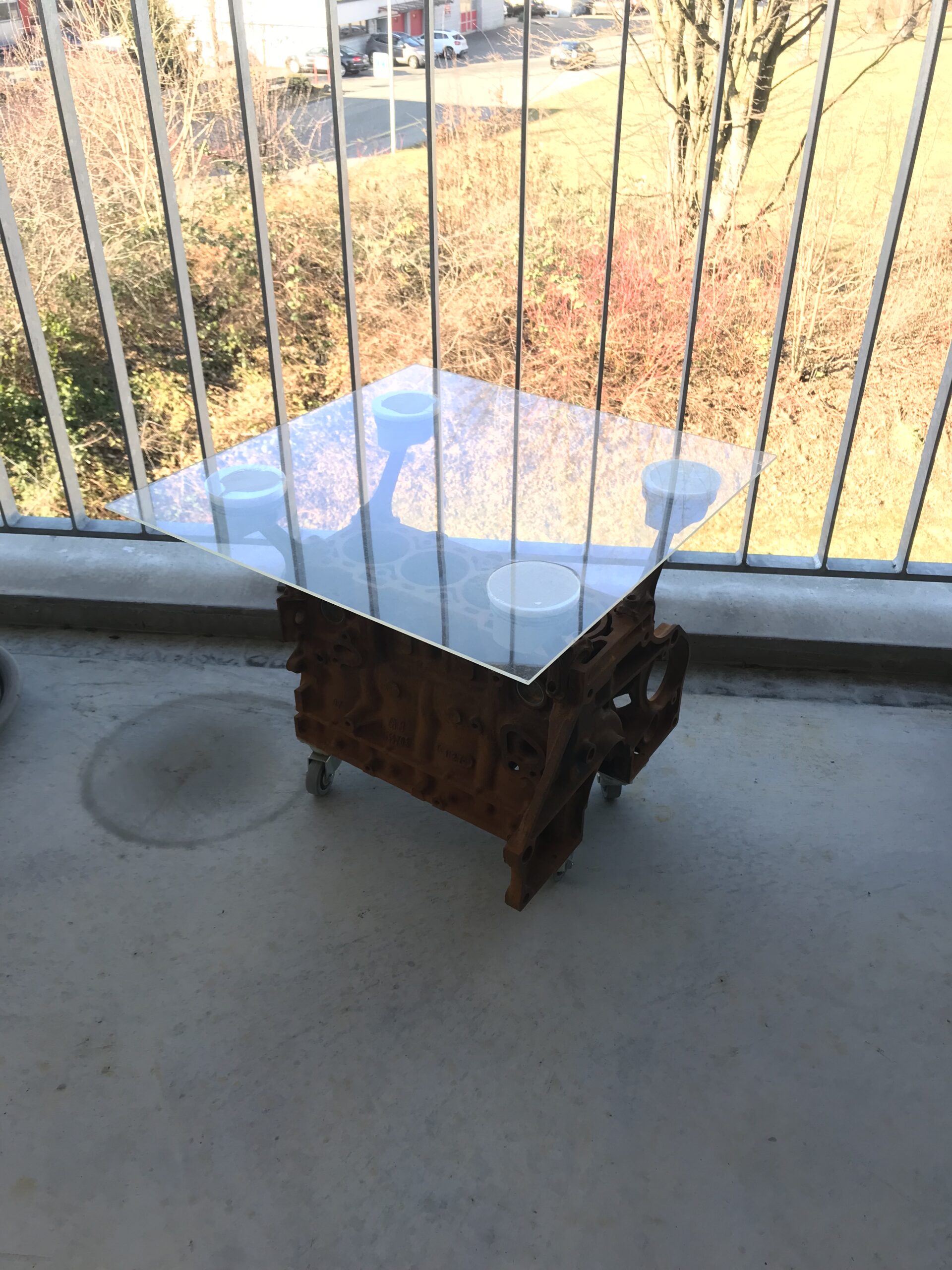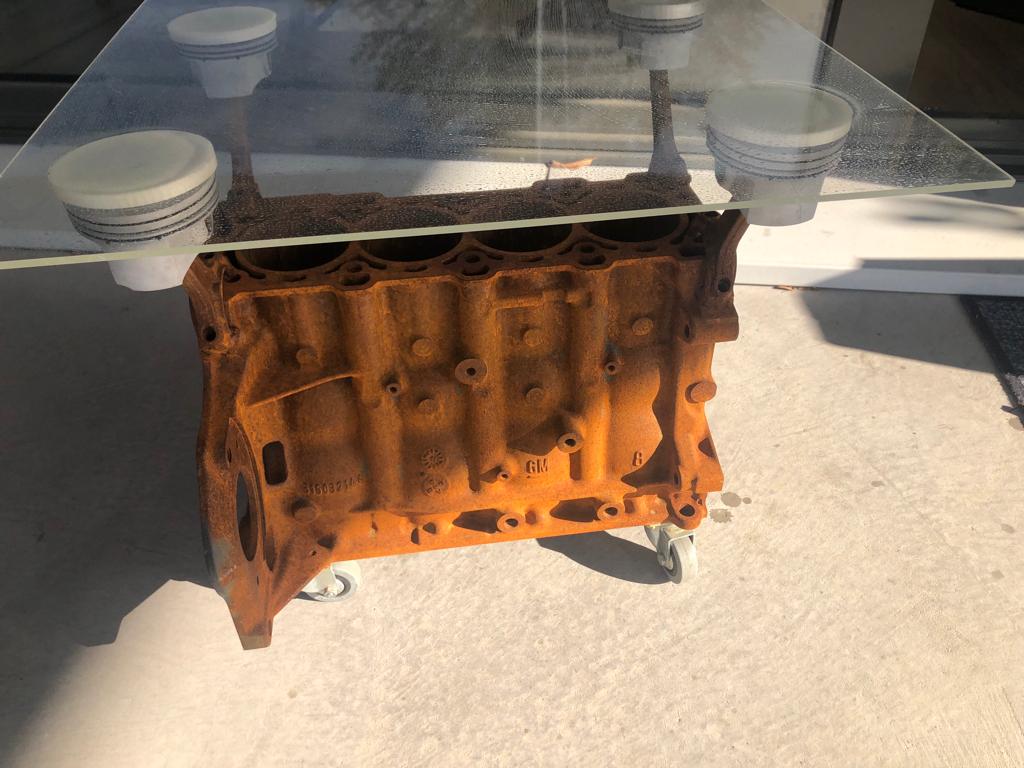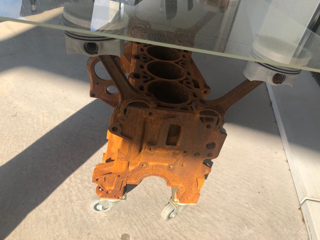 Opel Corsa OPC 1.6 Liter Motor zu einem Tisch umgebaut.